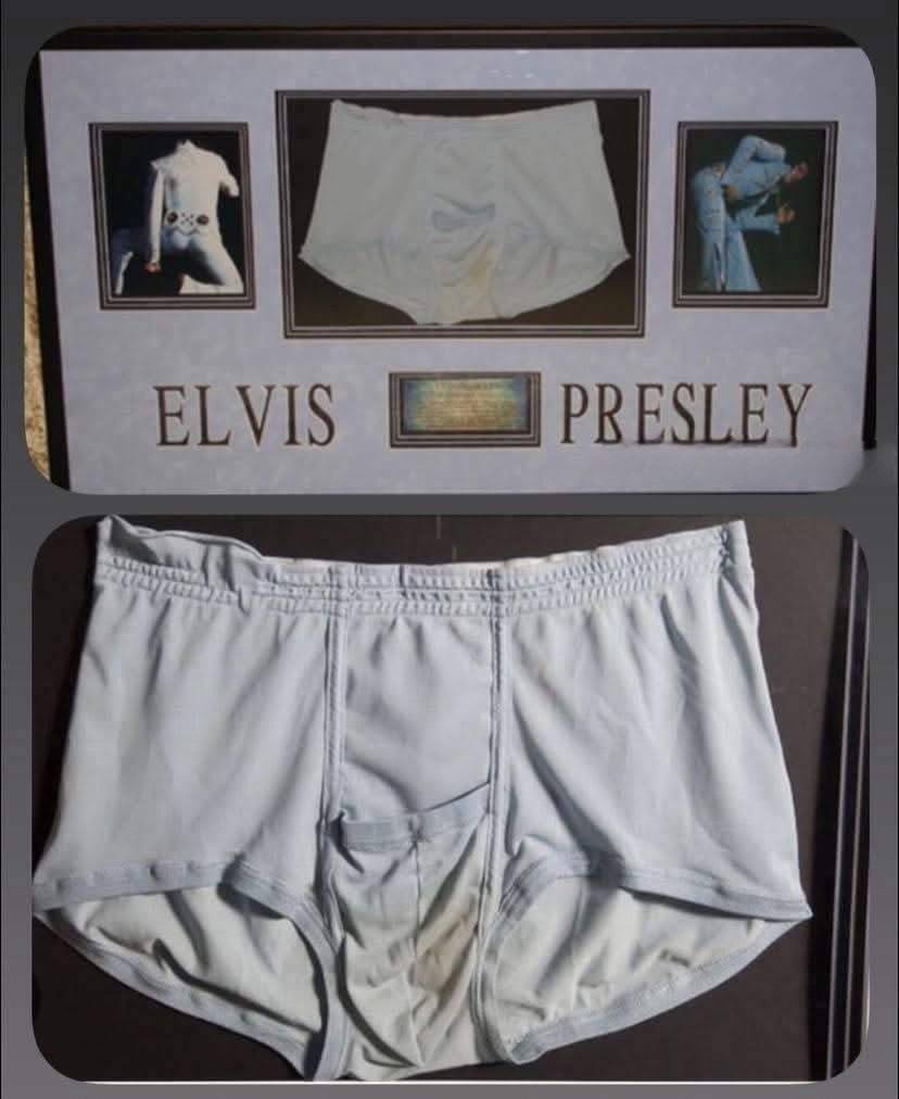 ของชิ้นหนึ่งที่ถูกพูดถึงมากที่สุดตั้งแต่ก่อนเริ่มงานคือกางเกงชั้นในสีฟ้าอ่อนที่เอลวิสสวมในปี ค.ศ. 1977—ปีสุดท้ายในชีวิตของเขา สิ่งที่ทำให้มันเป็นที่สนใจไม่ใช่เพราะดีไซน์หรือเนื้อผ้า แต่เป็นเหตุผลที่คนฟังแล้วต้องเลิกคิ้ว… มันถูกนำมาประมูลแบบ “ไม่ผ่านการซัก” สภาพทุกอย่างยังคงเดิมเหมือนวันที่ราชาเพลงร็อกเคยสวมใส่ ผู้เชี่ยวชาญคาดว่ามันจะทำราคาได้ถึง 10,000 ปอนด์ เพราะในโลกของนักสะสม ความใกล้ชิดกับศิลปิน—even แบบแปลก ๆ—มักมีราคาของมัน แต่ความเป็นจริงก็ยังมีขอบเขตของมันอยู่ ราคาประมูลสูงสุดไม่ถึงขั้นต่ำที่ตั้งไว้ กางเกงชั้นในสีฟ้าอ่อนจึงกลับบ้านไปพร้อมความเงียบงันที่ต่างจากความหวือหวาตอนเปิดตัว