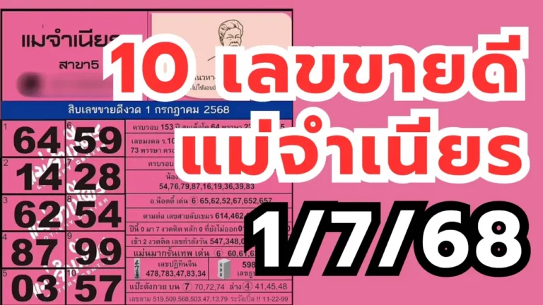 งวด 1 กรกฎาคม 2568 เข้าช่วงโค้งสุดท้ายแล้วสำหรับงวดนี้ มาติดตามเลขเด็ดเลขดัง สิบเลขขายดีแม่จำเนียร
