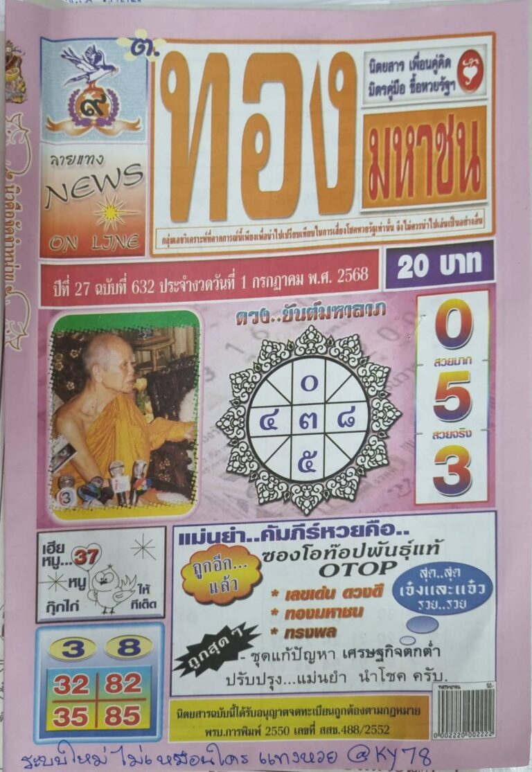 หนังสือหวยยอดนิยม หวยทองมหาชน คัดเลขเด็ดงวดประจำวันที่ 1 กรกฎาคม 2568 เน้นๆอาจารย์ดังมาฝาก