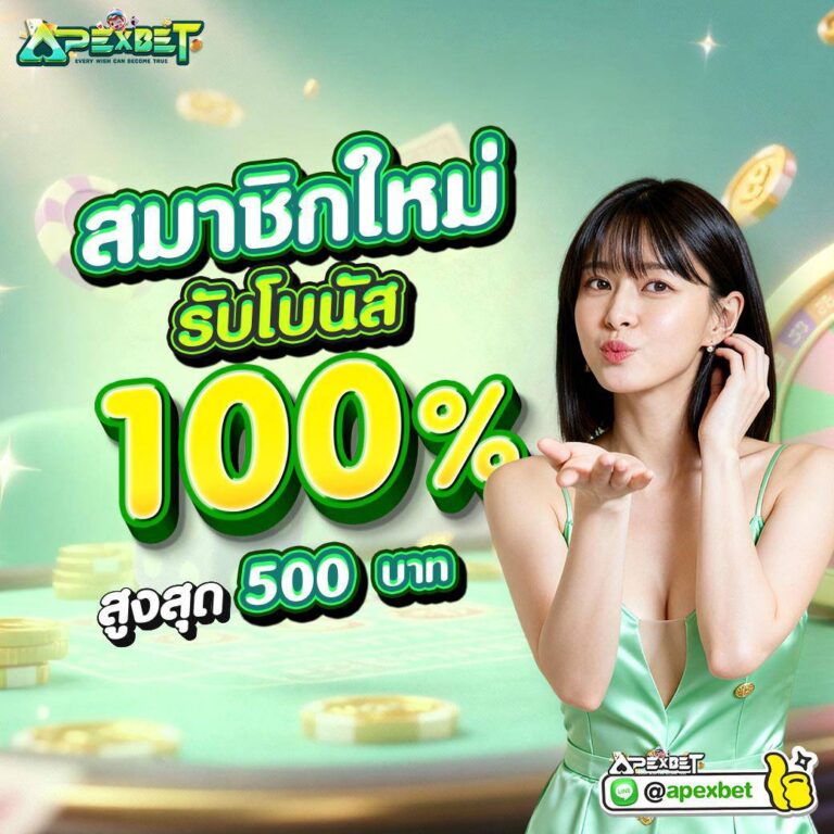 แจกหนักจัดใหญ่ สมัคร รับโบนัส 100 เปอร์เซนต์ สูงสุด 500 ที่ apexbet